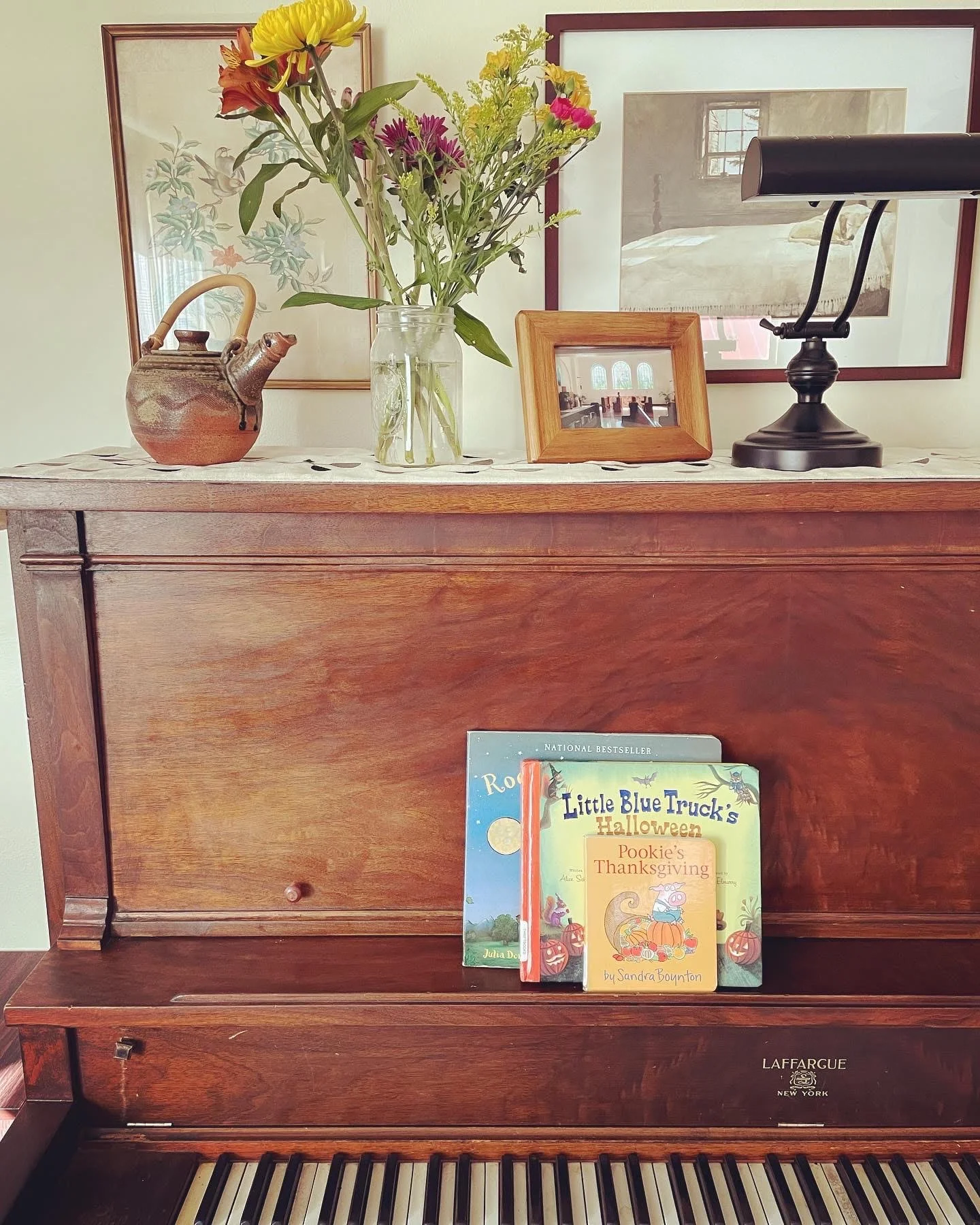 Fall books for Peter from the library. We’ve already enjoyed Little Blue Truck’s Halloween, Room on the Broom, It’s Pumpkin Day, Mouse!, and Pookie’s Thanksgiving. Here’s a link to a favorite blog of mine, Rising*Shining—with a post about favorite fall books for children!